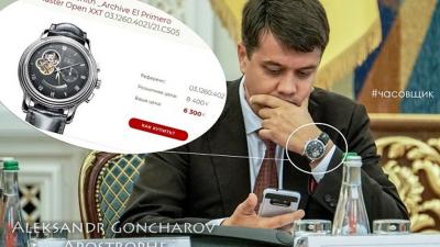 Спикер Верховной Рады Украины, лидер партии «Слуга народа» Дмитрий Разумков в ходе срочного совещания с президентом Украины Владимиром Зеленским похвастался дорогими часами стоимость которых составляет более восьми тысяч долларов.