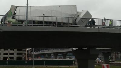 Сегодня, 31 октября, в аэропорту «Борисполь» произошло второе за день ЧП. На эстакаде, ведущей к выходу на третий этаж терминала D, перевернулся грузовик.