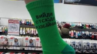 В Житомирских магазинах появились необычные зеленые носки с крылатыми фразами президента Украины Владимира Зеленского.