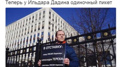 Сегодня в Москве во время проведения одиночного пикета у здания ФСИН задержали активиста Ильдара Дадина, требовавшего отставки руководителя управления ФСИН по Карелии Александра Тереха.