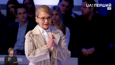 Лидер «Батькивщины» и кандидат в президенты Юлия Тимошенко приехала на дебаты на «Общественном», в то время, как ее оппоненты — действующий президент Петр Порошенко и комик Владимир Зеленский — не появились.