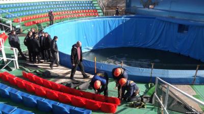 Из дельфинария эвакуировали двух дельфинов в безопасный водоем.