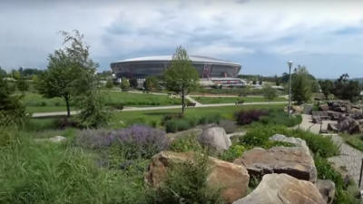 Житель неподконтрольного Украине Донецк на своем Ютуб-канале опубликовал видеоролик в котором показал, как сейчас выглядит центр города — стадион «Донбасс Арена», территория возле него, а также парк Ленинского Комсомола.