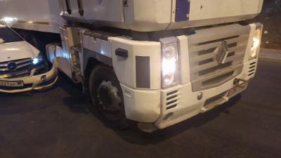 В центре Донецка столкнулись «Мерседес» и фура: движение транспорта остановлено