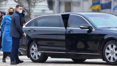Первая леди Украины Елена Зеленская ездит на пуленепробиваемом автомобиле марки Mercedes Benz S 500. Журналисты сняли ее машину.