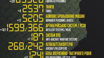 Согласно данных Генштаба ВСУ, общие боевые потери противника с 24.02 по 11.10 ориентировочно составили: