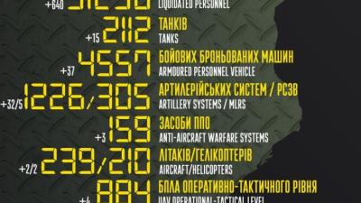 В Генштабе добавили, что общие боевые потери противника с 24.02 по 05.09 ориентировочно составляли: