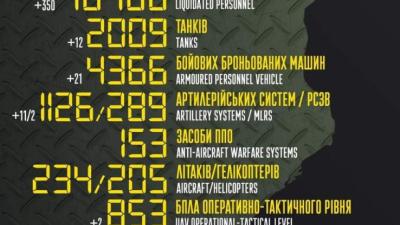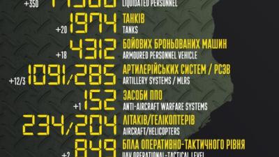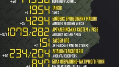 С начала полномасштабного вторжения РФ в Украину общие боевые потери противника с 24.02 по 01.09 ориентировочно составили около 48350 (+450) человек. Об этом сообщает Генштаб ВСУ.