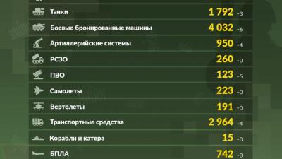 С начала полномасштабного вторжения России в Украину потери РФ составили 41 650 человек, 1792 танков и сотен единиц военной техники. Об этом сообщили в Генеральном штабе ВСУ.