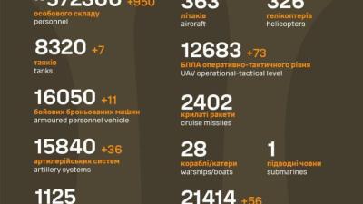 За минувшие сутки было ликвидировано 950 оккупантов и более 150 единиц техники.
