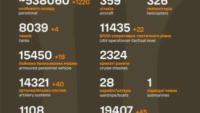 Информация Генштаба ЗСУ о потерях армии рф за минувшие сутки