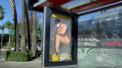 В Голливуде обнаженного мужчину упаковали в рекламный щит