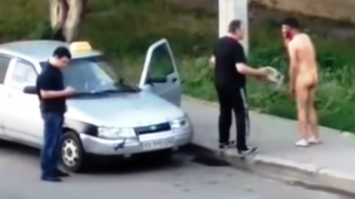 В Шевченковском районе Харькова абсолютно голый мужчина пытался залезть на автомобиль такси.