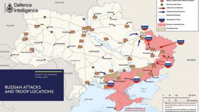 Минобороны Британии опубликовало карту боевых действий в Украине актуальную по состоянию на 5 мая.
