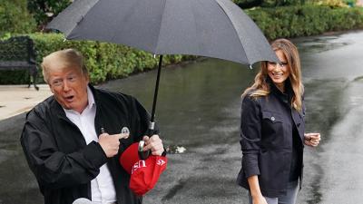 Дональд Трамп при входе на борт своего самолета не сумел закрыть зонт. Американский президент просто оставил его на трапе.