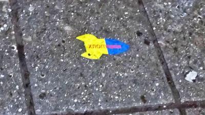 В аннексированном Крыму неизвестные украинские патриоты распространили наклейки, окрашенными в цвета флага Украины. Об этом сообщают пользователи в социальных сетях.