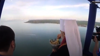 Российские оккупанты с помощью огромного аэростата освятили с неба почти достроенный Керченский мост.