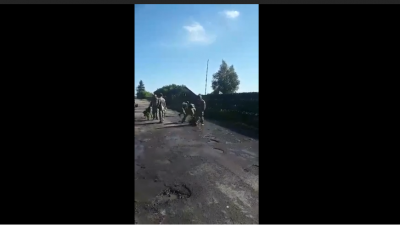 В Луцке перед визитом президента Украины Владимира Зеленского украинские военные выгребали воду из луж на дороге. Об этом сообщат 24 канал.