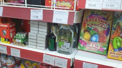 «Товары для детей» в супермаркете в Донецке: краски, ленденцы, водка