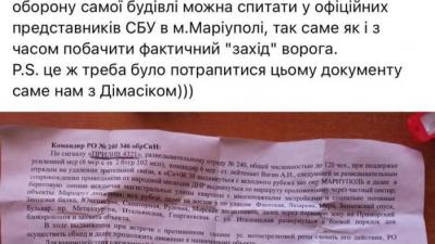Украинские военные, защищающие Мариуполь, заполучили план захвата здания СБУ города российскими оккупантами. Об этом написал защитник города, мариупольский писатель Иван Богдан на своей странице в Фейсбук.