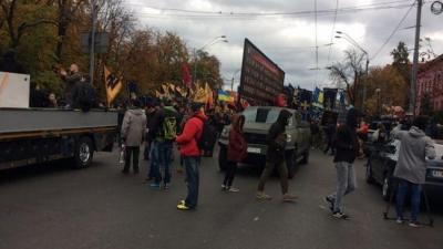 В центре Киева вдоль бульвара Шевченко начался марш с участием представителей ВО «Свобода», «Национального корпуса», «Правого сектора» и других националистических организаций.