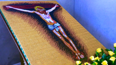 В Волынской области в селе Люблинец 29-летний мастер Юрий Семенюк создал икону из 106 тысяч спичек.