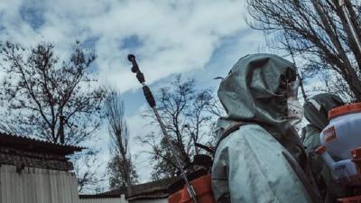 Во временно неподконтрольном украинскому правительству Донецке МЧС провели показательные учения, где показали процесс дезинфекции транспортного средства и помещения, а «Камаз» спасателей провел чистку спецсредством дорогу рядом с пожарной частью в Киевском районе.