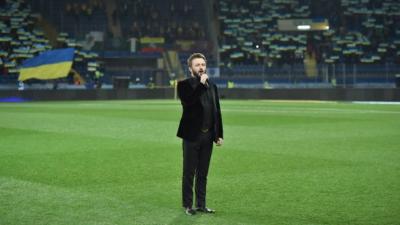 Сегодня на Софиевской площади украинский певец Михаил Хома (DZIDZIO) ко Дню Независимости исполнил гимн Украины.