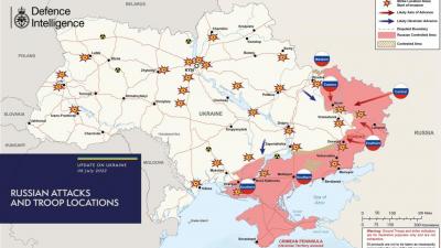 Минобороны Британии опубликовало актуальную карту боевых действий в Украине по состоянию на 1 июля.
