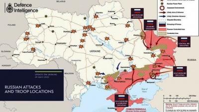 Минобороны Британии опубликовало карту боевых действий в Украине актуальную по состоянию на 5 мая.