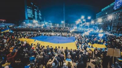Десятки тысяч дончан развернули на центральной площади Донецка огромный флаг Украины, чтобы показать всему миру, что им не нужен «русский мир».