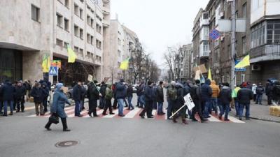 Сегодня, в столице Украины, около тысячи представителей партии Национальный корпус перекрыли движение транспорта по главной улице столицы — Крещатику.