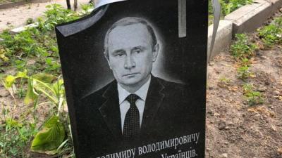 В Яготине Киевской области местные жители установили надгробие на очередной «могиле» президента России Владимира Путина. Фотографию надгробия опубликовал пользователь Facebook Александр Харченко.
