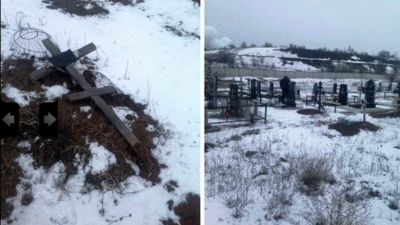 В неподконтрольном украинским властям Алчевске (Луганская обл.), в период пасхальных праздников неизвестные на спецтехнике повредили могилы, уничтожили ограды, разбили надгробия и кресты.
