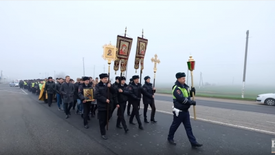 В российском городе Краснодаре около 100 инспекторов автоинспекции прошли крестным ходом по самому аварийно-опасному участке трассы Темрюк-Краснодар.