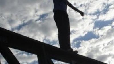 В Запорожье, на мосту Преображенского маршрутное такси с пассажирами провалилось задним колесом в сквозную дыру в асфальтовом покрытии и застряла.
