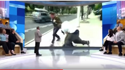 В оккупированном Донецке прямо во время эфира телевизионной программы «Время Покажет» на Первом канале на российского журналиста Семена Пегова напал неизвестный мужчина в военной форме.