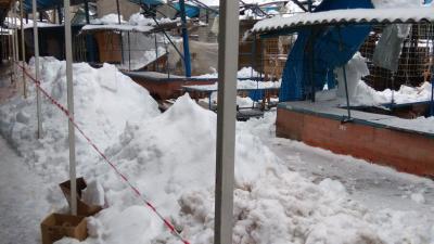 В сети появились фотографии с Центрального рынка в Горловке, где под тяжестью снега обвалился навес. Снимки опубликовал местный житель в соцсети Twitter.