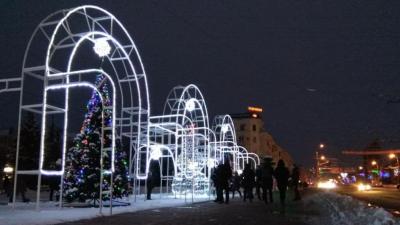 Луганчане показали в социальных сетях фотографии неподконтрольного украинской власти Луганска, украшенного для новогодних празднований.