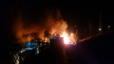 К утру воскресенья спасателям удалось ликвидировать возгорание Отмечено, что нет никаких признаков вытекания вредных веществ в результате пожара.