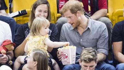 Во время трансляции баскетбольного матча Игр непобежденных в Торонто. Принц Гарри, так увлекся баскетбольным матчем, что не заметил воровства попкорна из своего пакета.