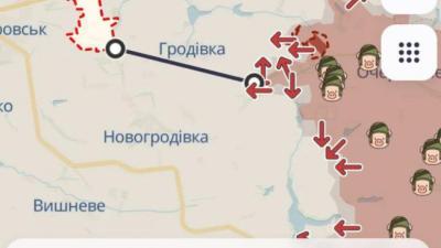 Украинские аналитики ресурса DeepState сообщают, что за последнее время, в результате боевых действий расстояние от линии, где идут активные бои до Мирнограда Донецкой области сократилось до менее, чем 11,5 километров.
