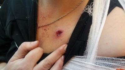 По их информации, молодая женщина была ранена днем, около 12:00, во время прогулки со своим трехлетним ребенком.