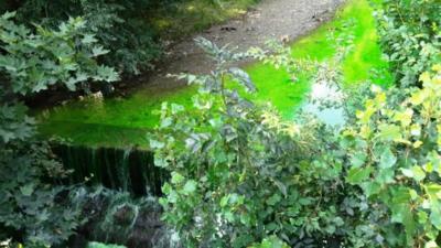 По словам местных жителей, расположенная в районе Парка Победы и поселка Васильевка река, в последнее время изменила цвет, а сама вода издает неприятный запах.