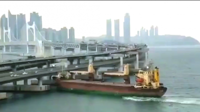 Российское грузовое судно SEAGRAND в порту южнокорейского города Пусан протаранило мост. Об этом сообщают российские СМИ.