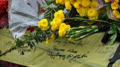 На Майдане Незалежности в Киеве простились с ветераном ООС Николаем Микитенко, совершившим самосожжение в ночь на 11 октября.
