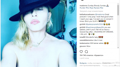 Популярная певица Мадонна опубликовала на своей Instagram-странице селфи, на котором запечатлена частично обнаженной.