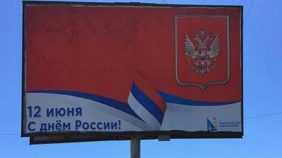 В оккупированном Севастополе ко Дню России, который в РФ отмечают 12 июня, оккупационная «власть» разместила 30 билбордов, на которых изображен перевернутый флаг РФ. Также, на некоторых билбордах изображена карта России без Крыма.