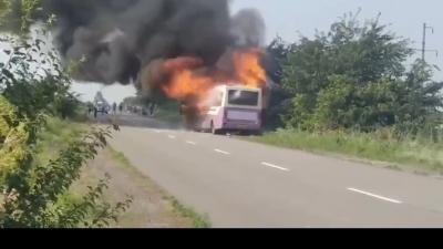 На трассе возле Новоазовска к югу от неподконтрольного Донецка загорелся автобус. Об этом пишут очевидцы в соцсетях.