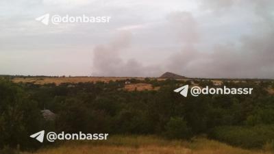 Склад боеприпасов продолжает гореть в Шахтерске на неподконтрольной Украине территории Донецкой после ночного ракетного обстрела.